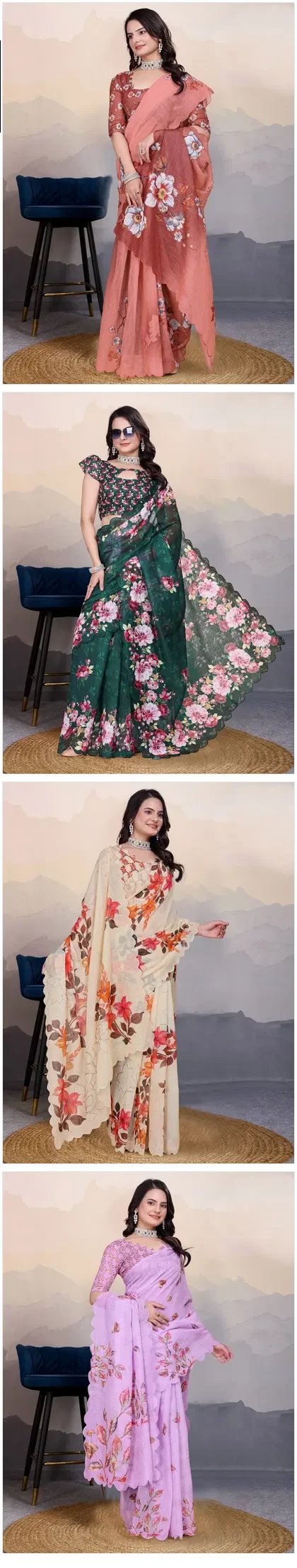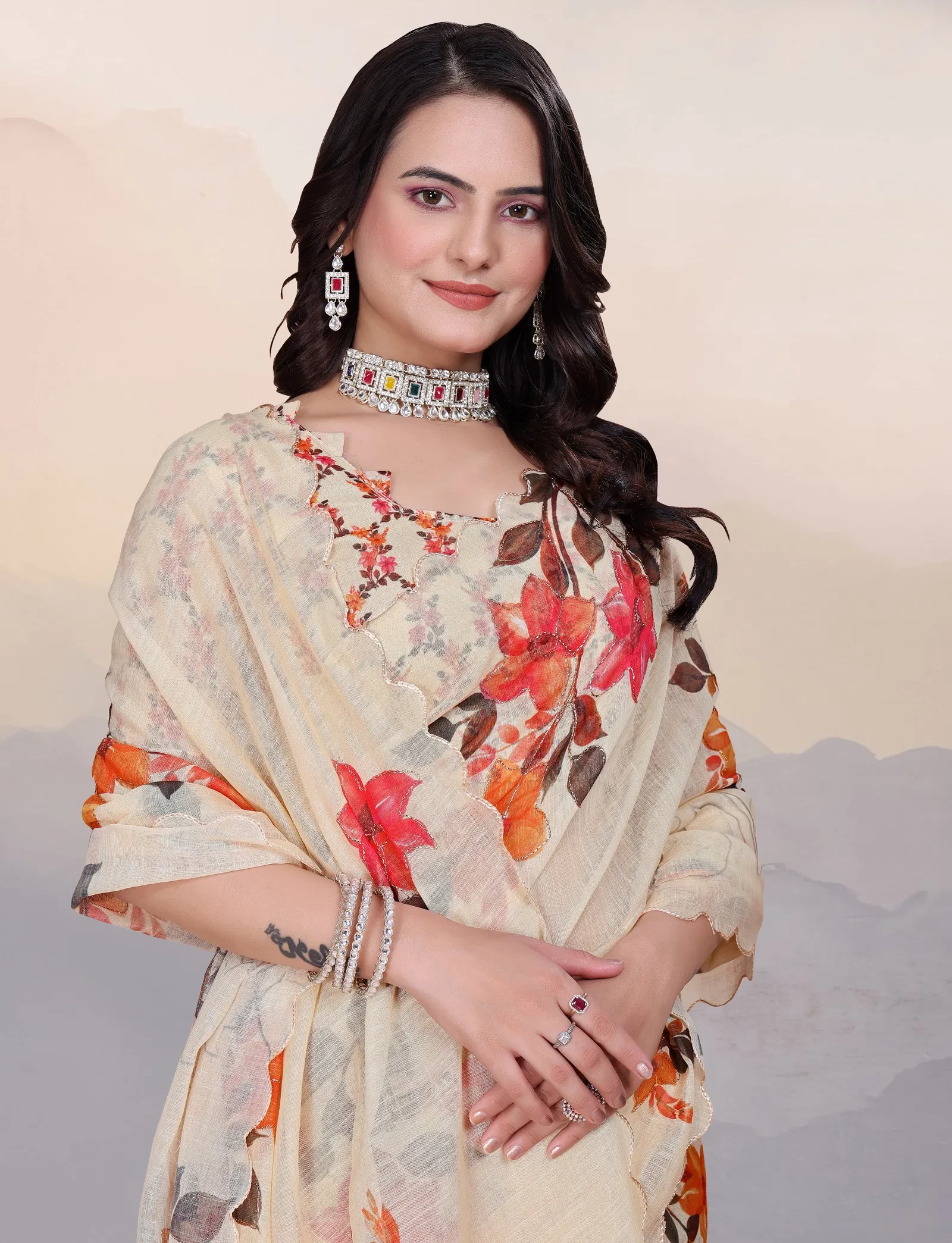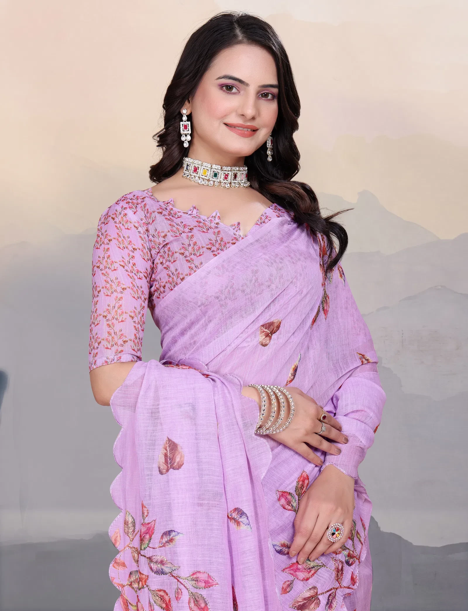 Adhya Cotton Linen Aari Bharat Work with Digital Printed Saree Collection