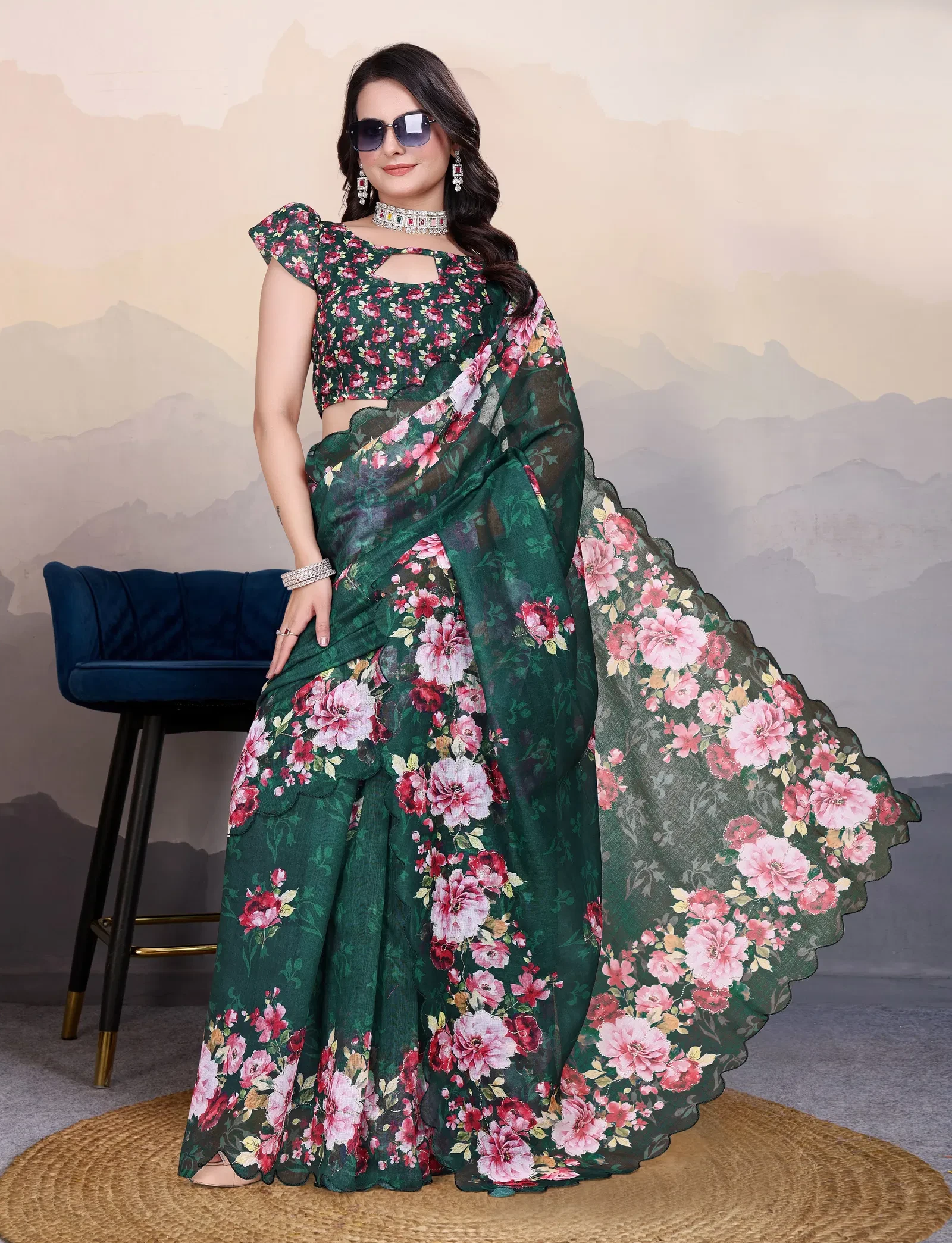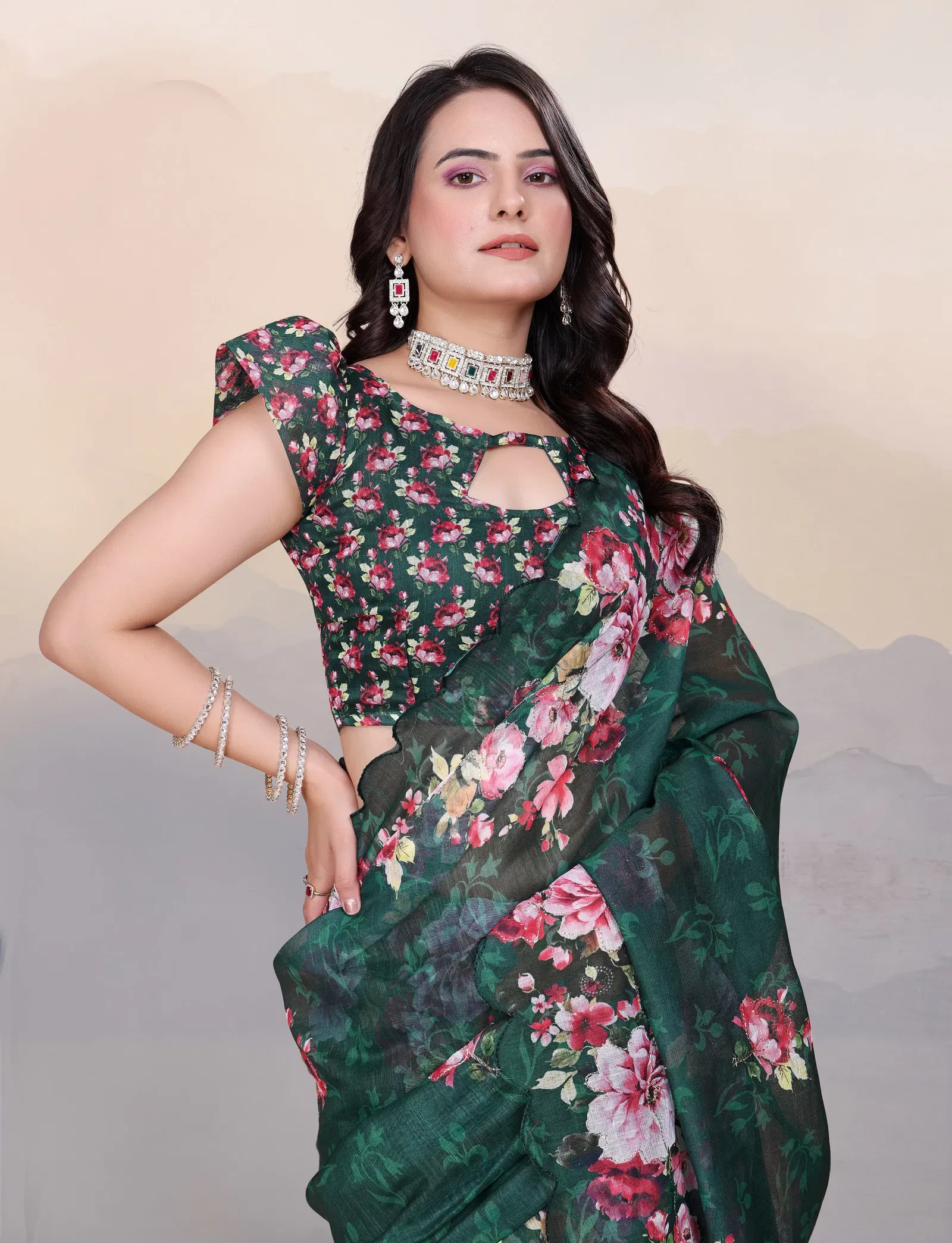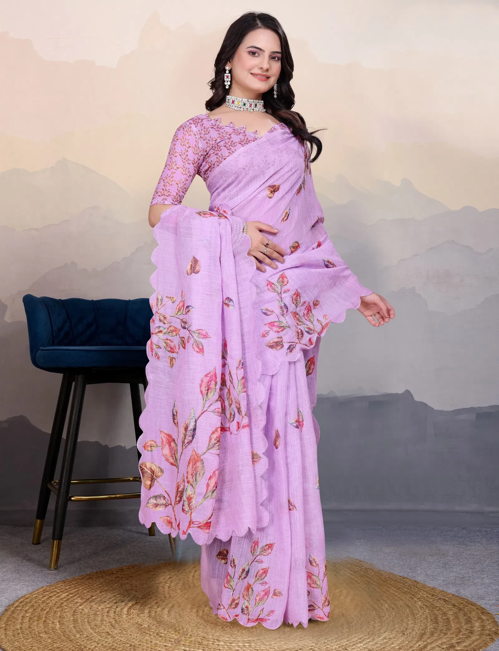 Saree Cotton Linen Aari Bharat Work Digital Printed Saree