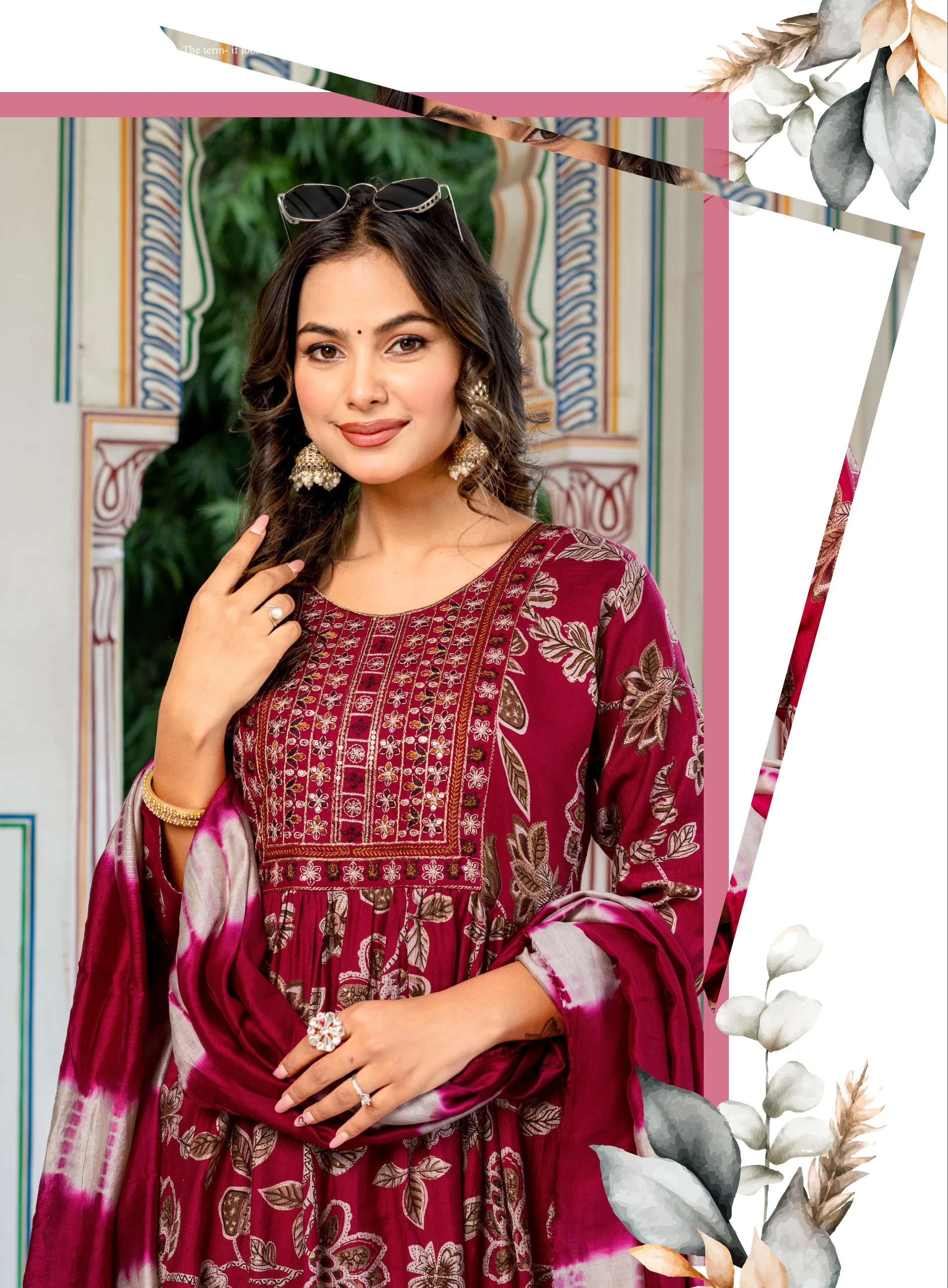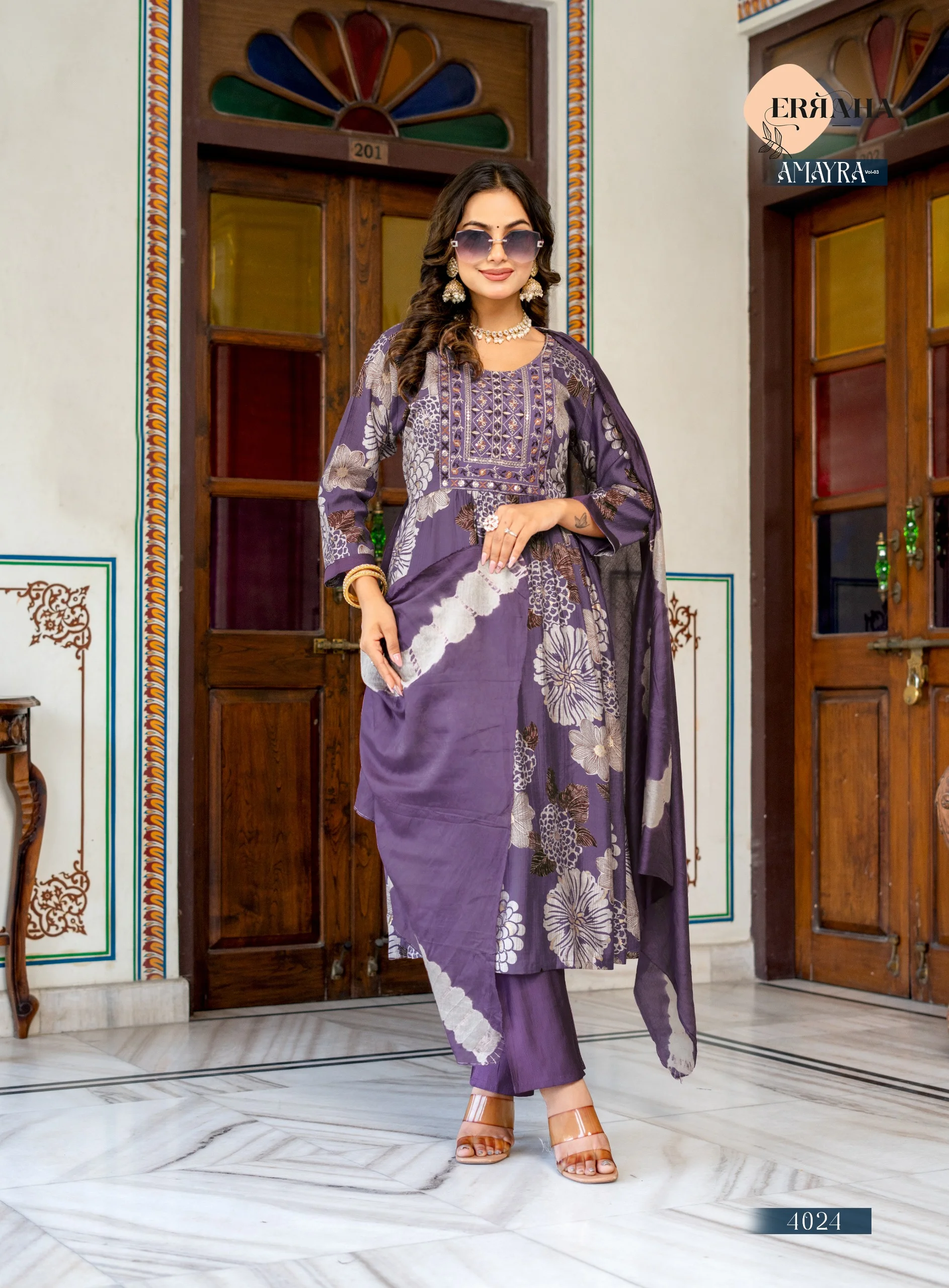 Top Heavy Vetican Printed With Foil Print And Embroidery Work Patch On Neck