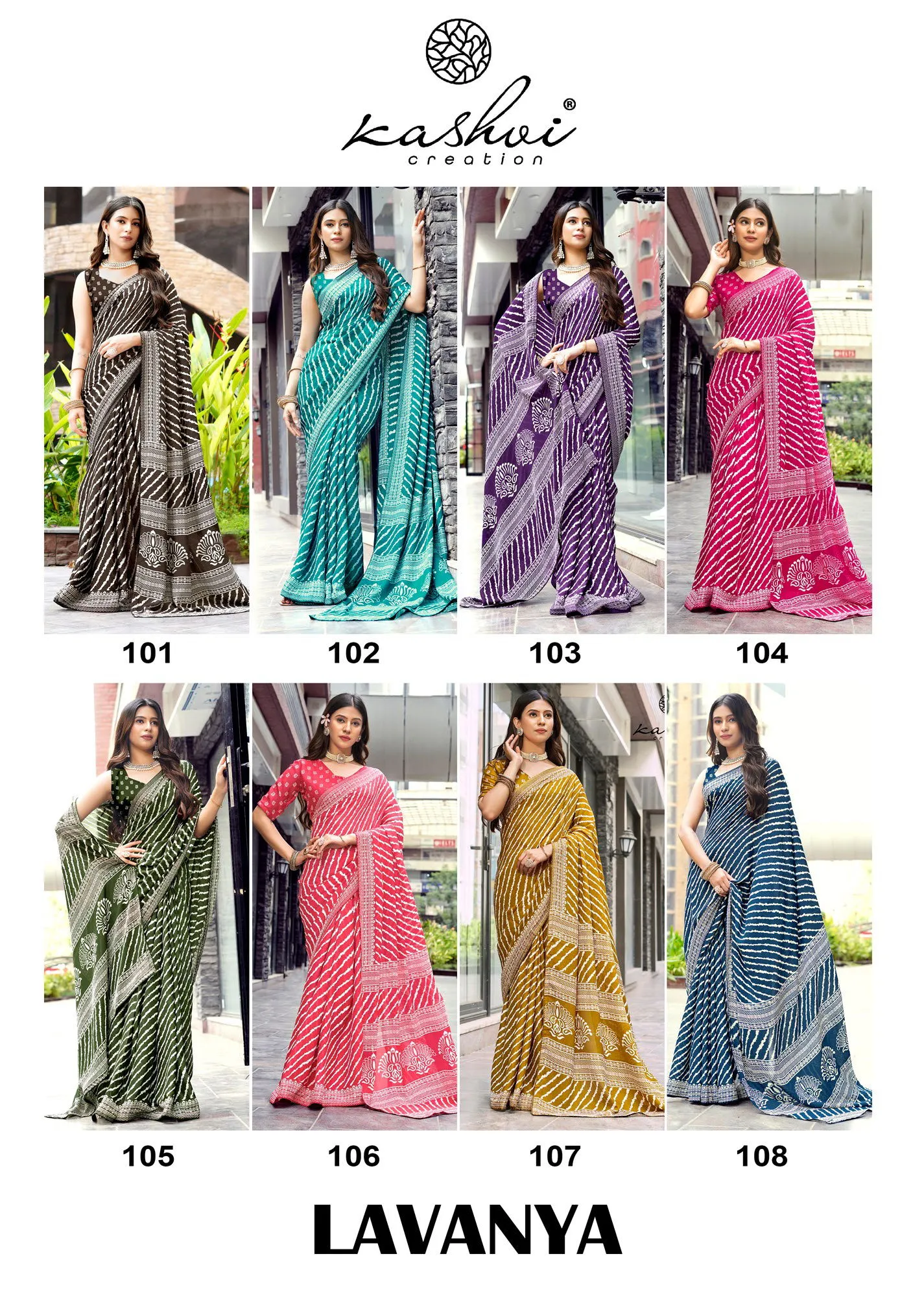 Kashvi Lavanya 101 to 108 Dull Moss Digital Printed Saree Collection