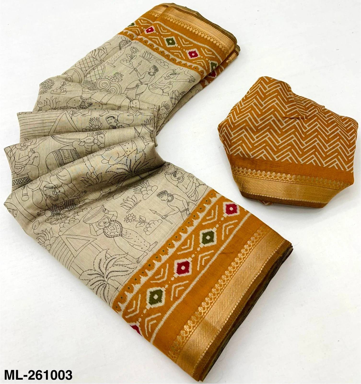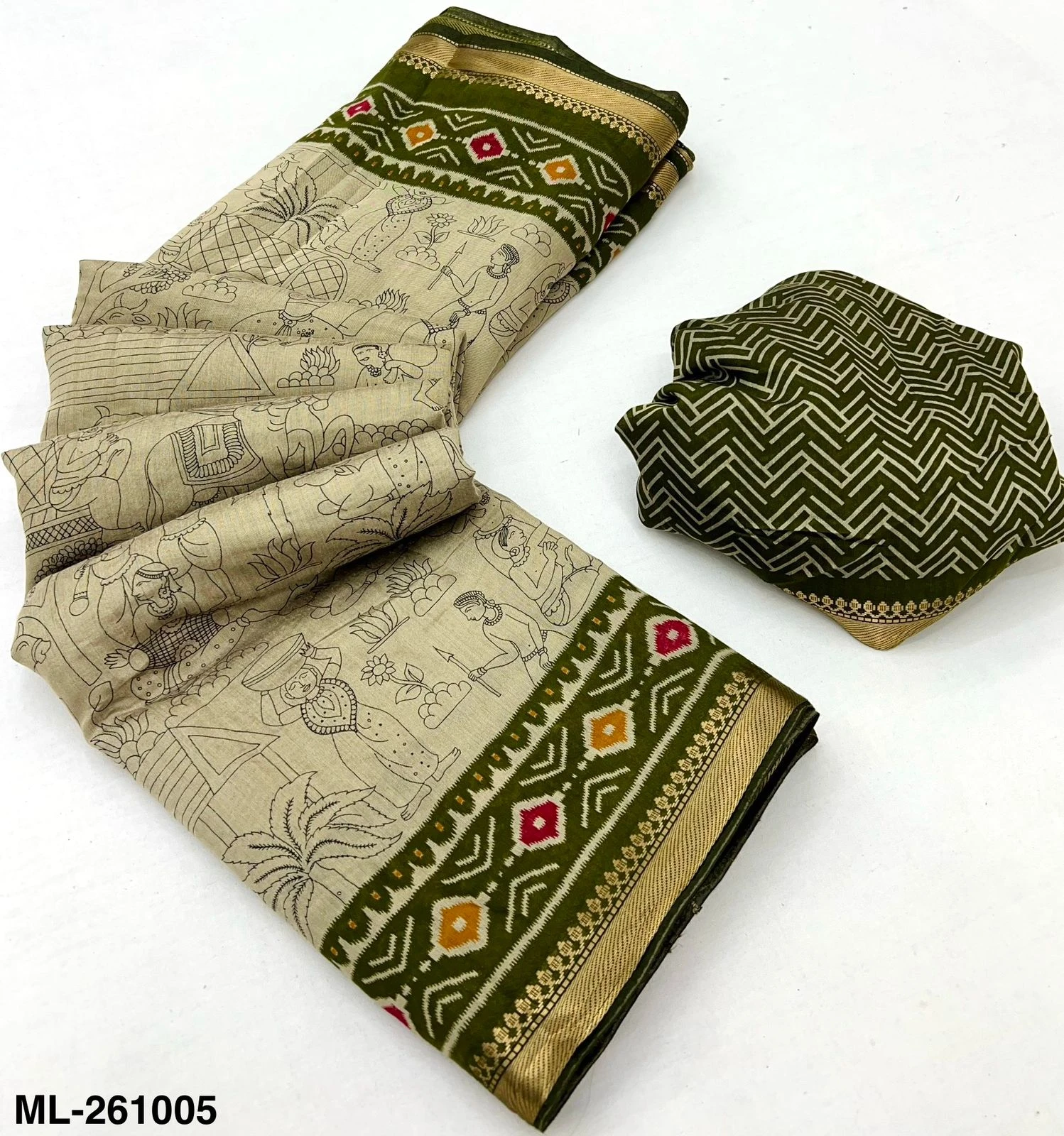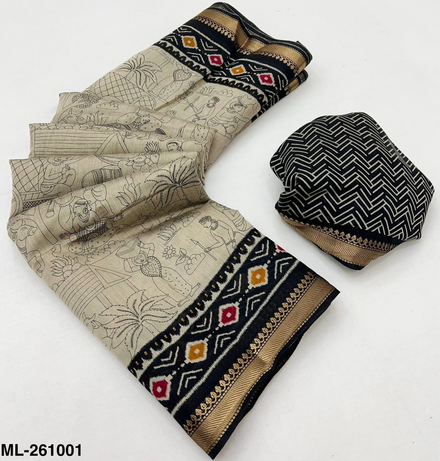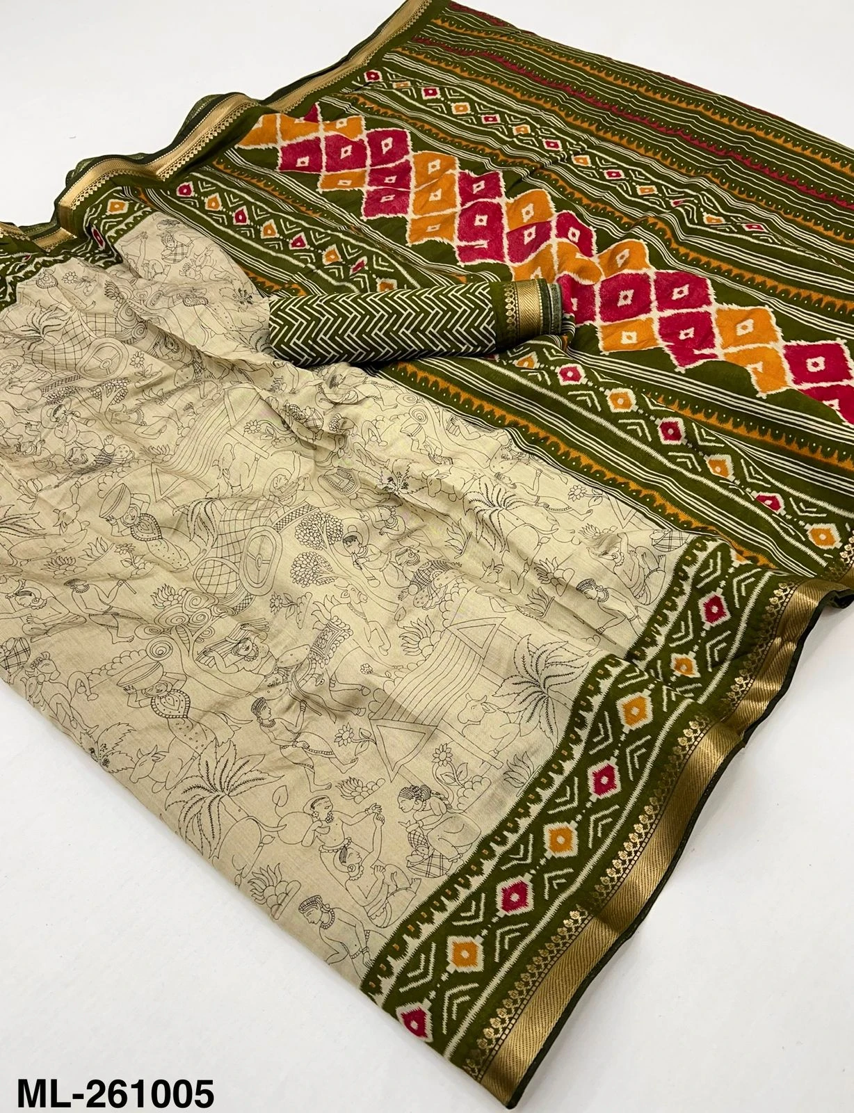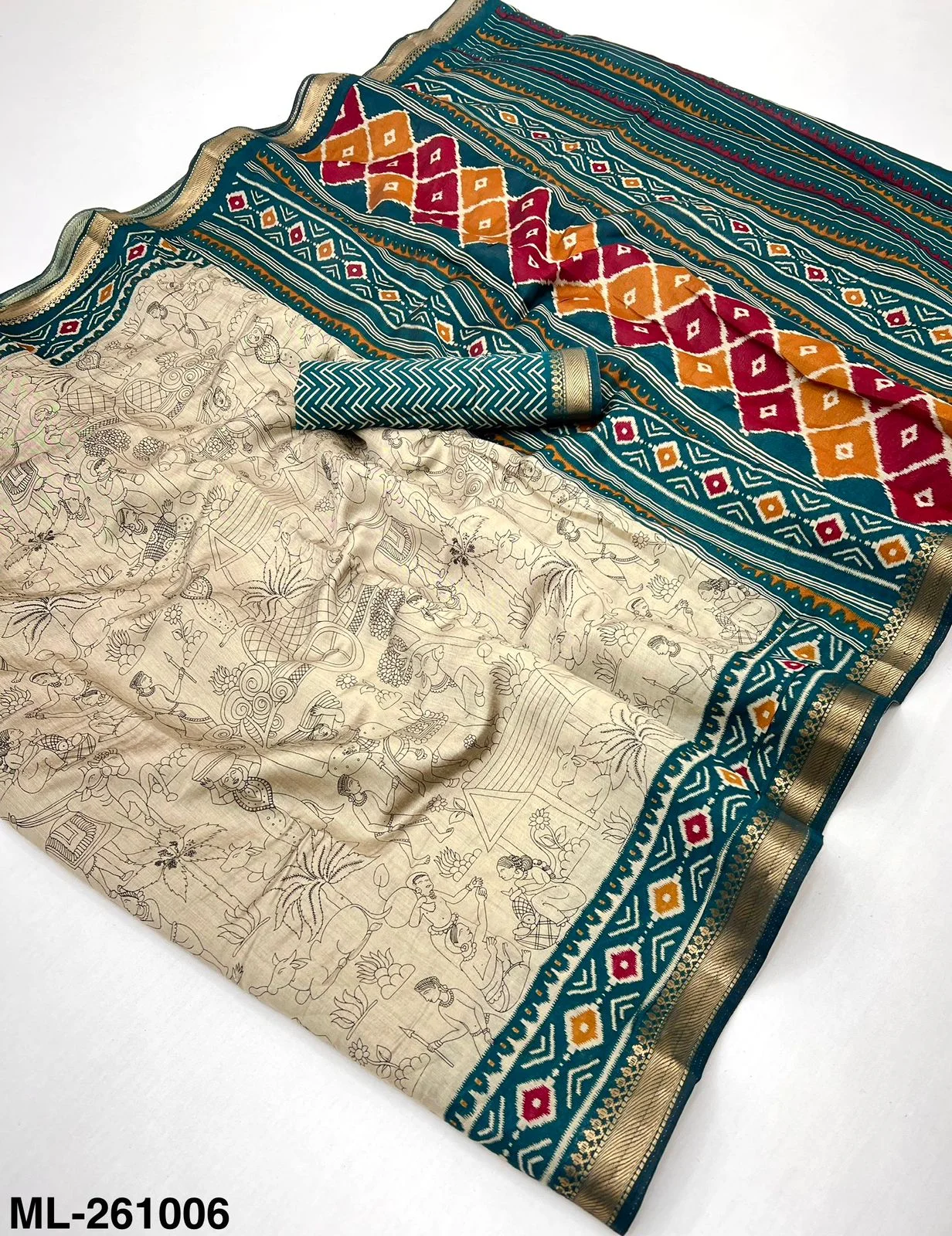 Fabric Soft Mul Cotton with Designer Print & Zari Border