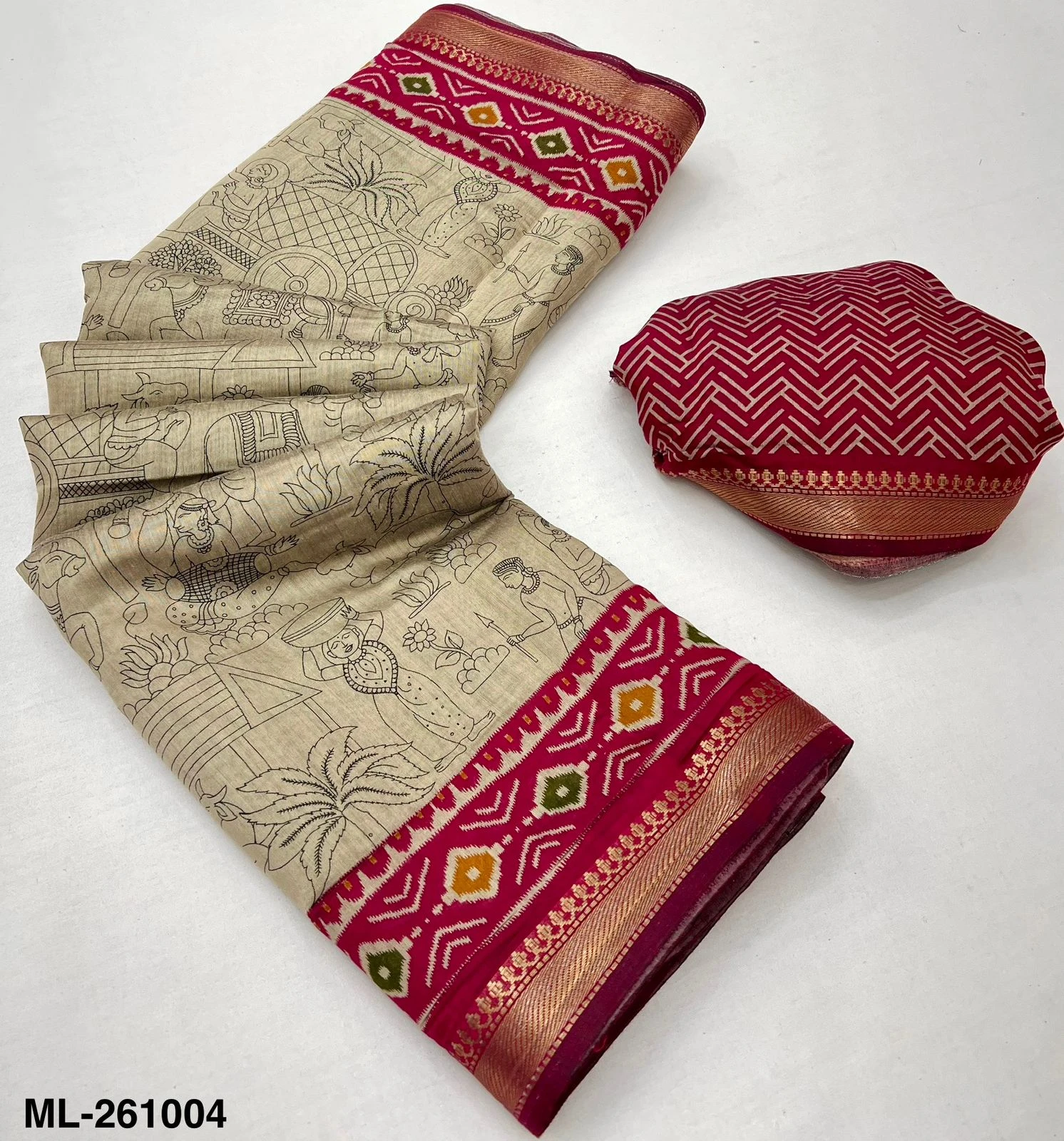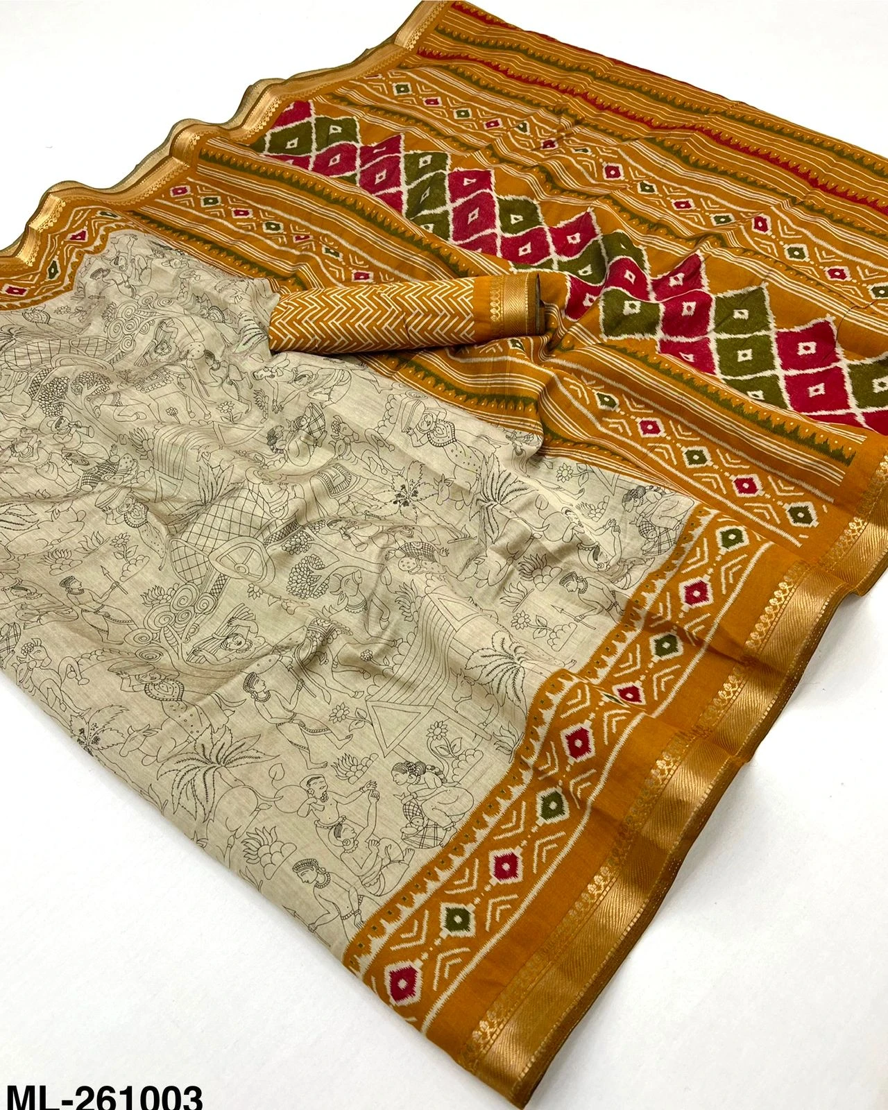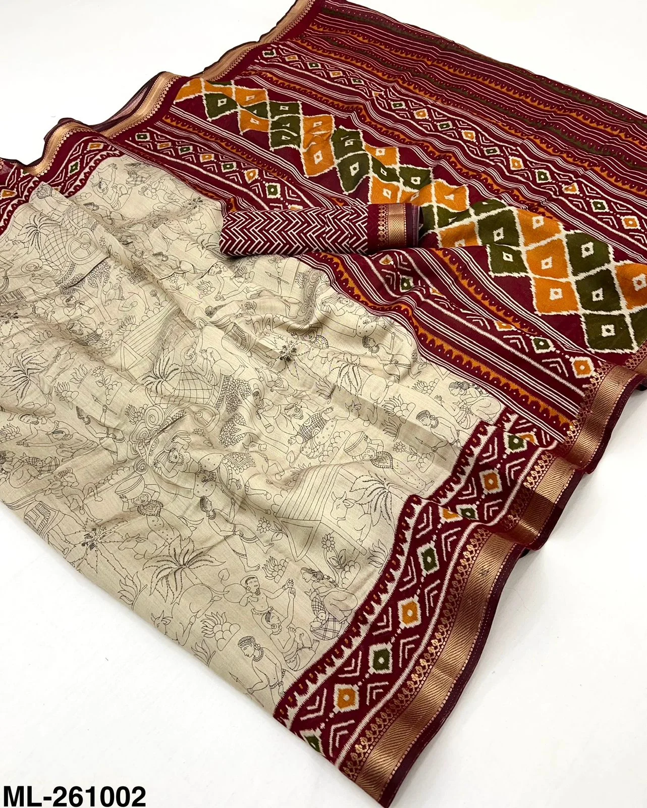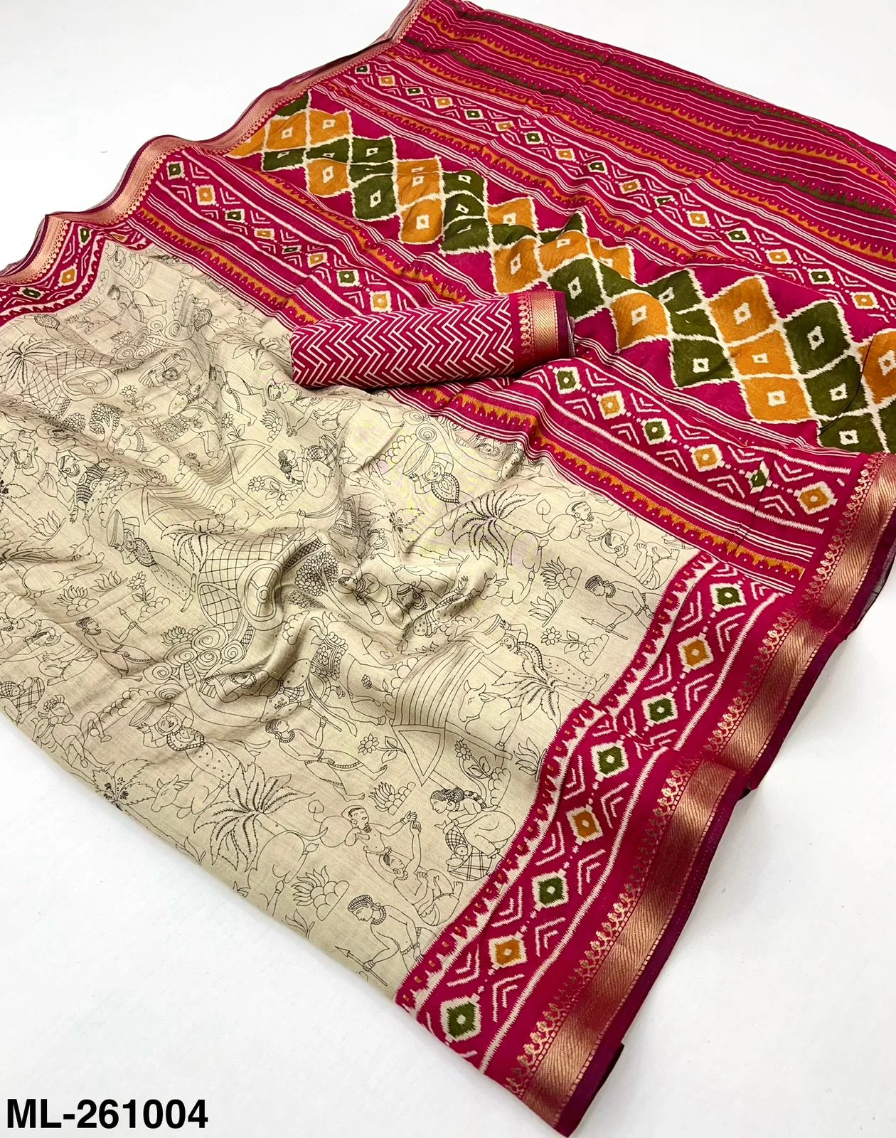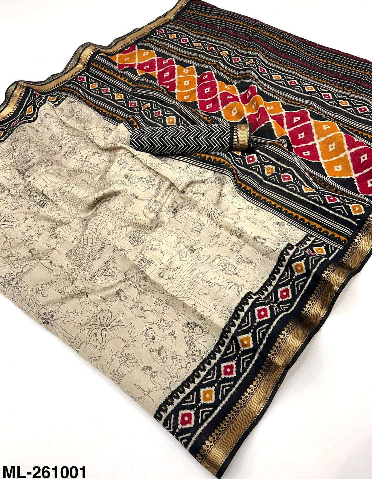 Fabric Soft Mul Cotton with Designer Print & Zari Border
