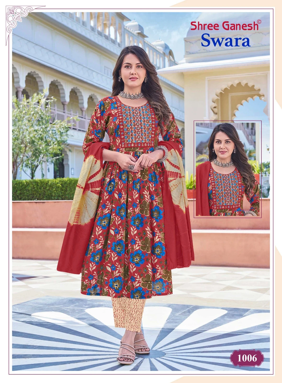 | Top | Heavy Rayon Printed With Foil Print And Embroidery Work Patch On Neck |
