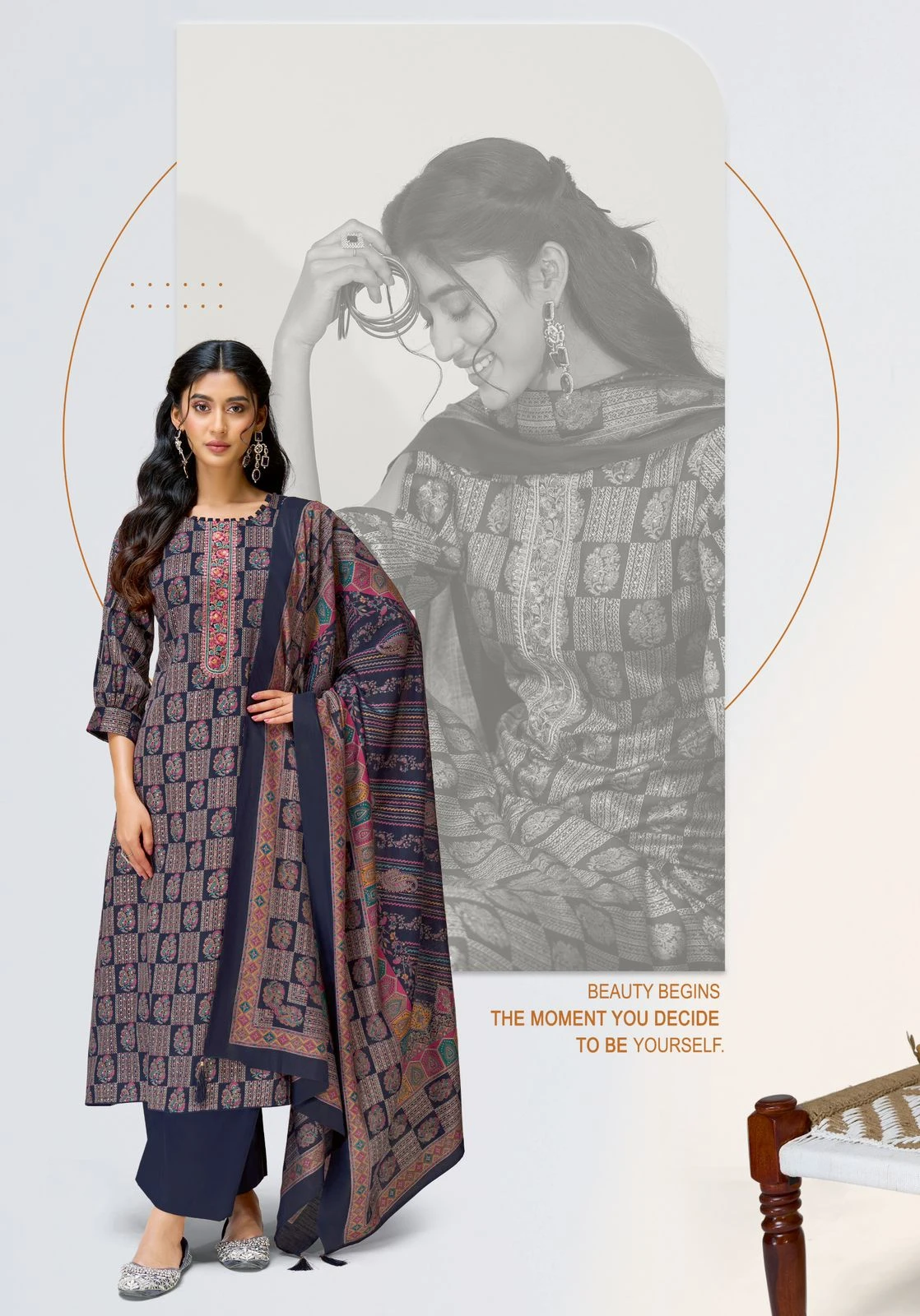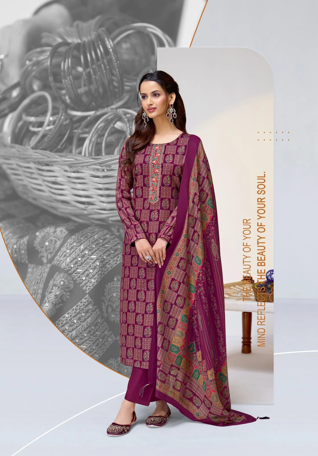 | Top | Jaam Satin Discharge Print With Foil And Neck Embroidery Work |